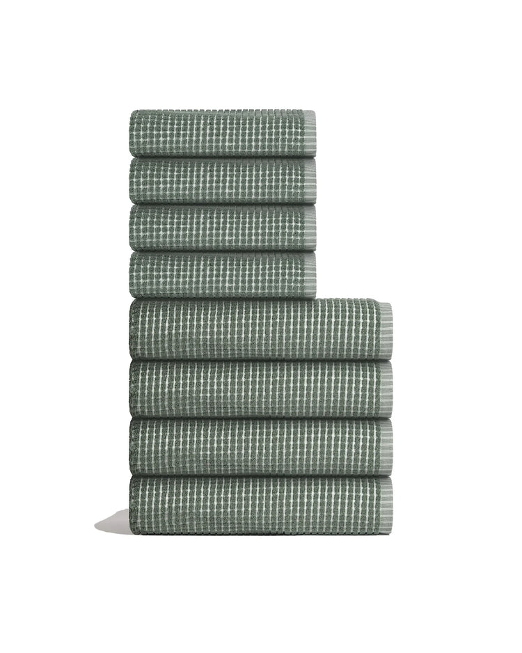 More towels, even fewer washes. Our Terry Waffle 8pc Towel Bundle blends terry’s plush softness with waffle’s quick-dry convenience—keeping fresh towels in rotation at all times. Designed with a sculpted texture for better airflow and absorbency, they dry quickly and get softer with every wash.