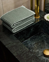 Soft where you want it, fast-drying where you need it. Made from 100% American-grown cotton, the Terry Waffle Collection blends plush comfort with a sculpted texture that enhances absorbency and airflow—giving you a fresh, ready-to-use towel, every time.
